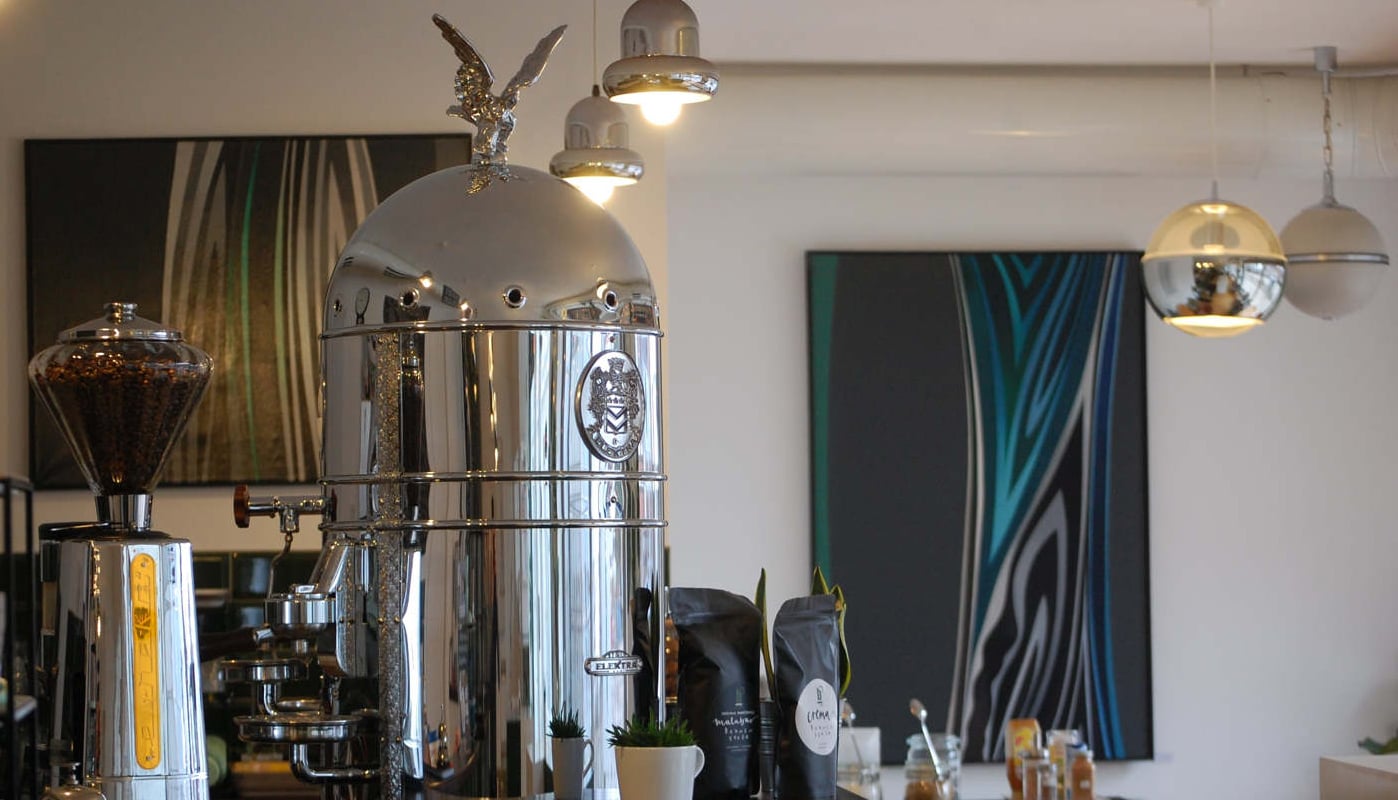 Für Espresso-basierte Getränke verwenden wir Indian Monsooned Malabar Kaffeebohnen (100% Arabica, Single Origin). Diese kräftige Bohne hat einen schokoladig-würzigen Geschmack, womit sie sich auch in stark milchhaltigen Getränken wie Cappuccino oder Latte Macchiato gut durchsetzen kann. Kaffee-basierte Getränke werden mit einer Crema Bohne zubereitet (100% Arabica). Diese Bohne zeichnet sich durch ihren ausgewogenen und sanften Geschmack aus. Alle Getränke sind auch entkoffeiniert erhältlich, dank einer 100% Arabica Bohne aus Kolumbien aber auch ohne Koffein mit vollem Geschmack. Alle Kaffeebohnen beziehen wir bei der renommierten Kaffeerösterei Fausto in München. Zubereitet werden alle Espresso- und Kaffeegetränke in unserer wundervollen 3-gruppigen Elektra Belle Epoque. Die sieht nicht nur beeindruckend aus, sondert liefert auch ganz köstliche Ergebnisse.